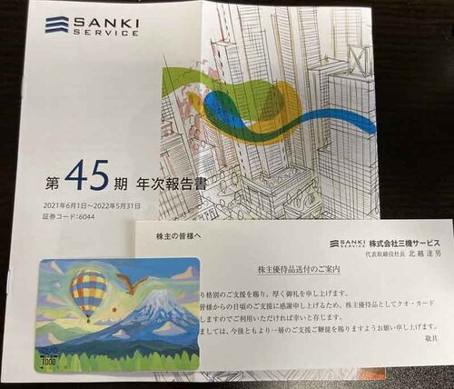 三機サービス(6044)から優待が届きました。 今回も変わらずクオカード1000円分になります。本社が姫路にある珍しい会社です。 sophisticated-life.hatenadiary.jp sophisticated-life.hatenadiary.jp
